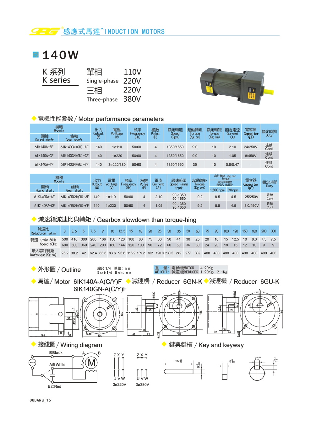 6I140W感应/调速马达