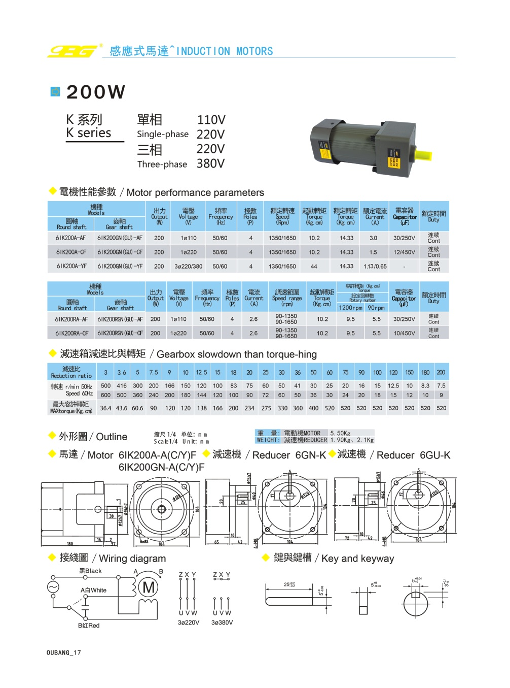 • 1、感应/调速马达启动转矩不是很大,但其结构简单,信赖度高,效率也高。<br/>2、感应调速马达可与调速器配合使用,来调整大范围(50Hz:90-1250rpm60HZ:90-1550rpm)。<br/>3、感应/调速马达分为...