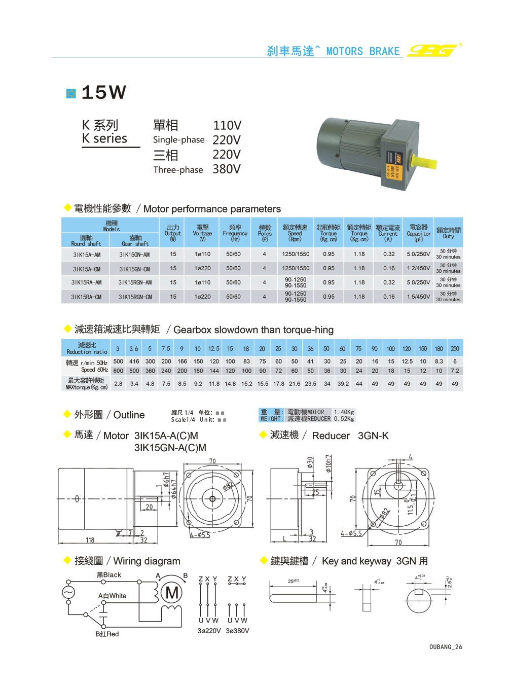 • 1、感应/调速马达启动转矩不是很大,但其结构简单,信赖度高,效率也高。<br/>2、感应调速马达可与调速器配合使用,来调整大范围(50Hz:90-1250rpm60HZ:90-1550rpm)。<br/>3、感应/调速马达分为...