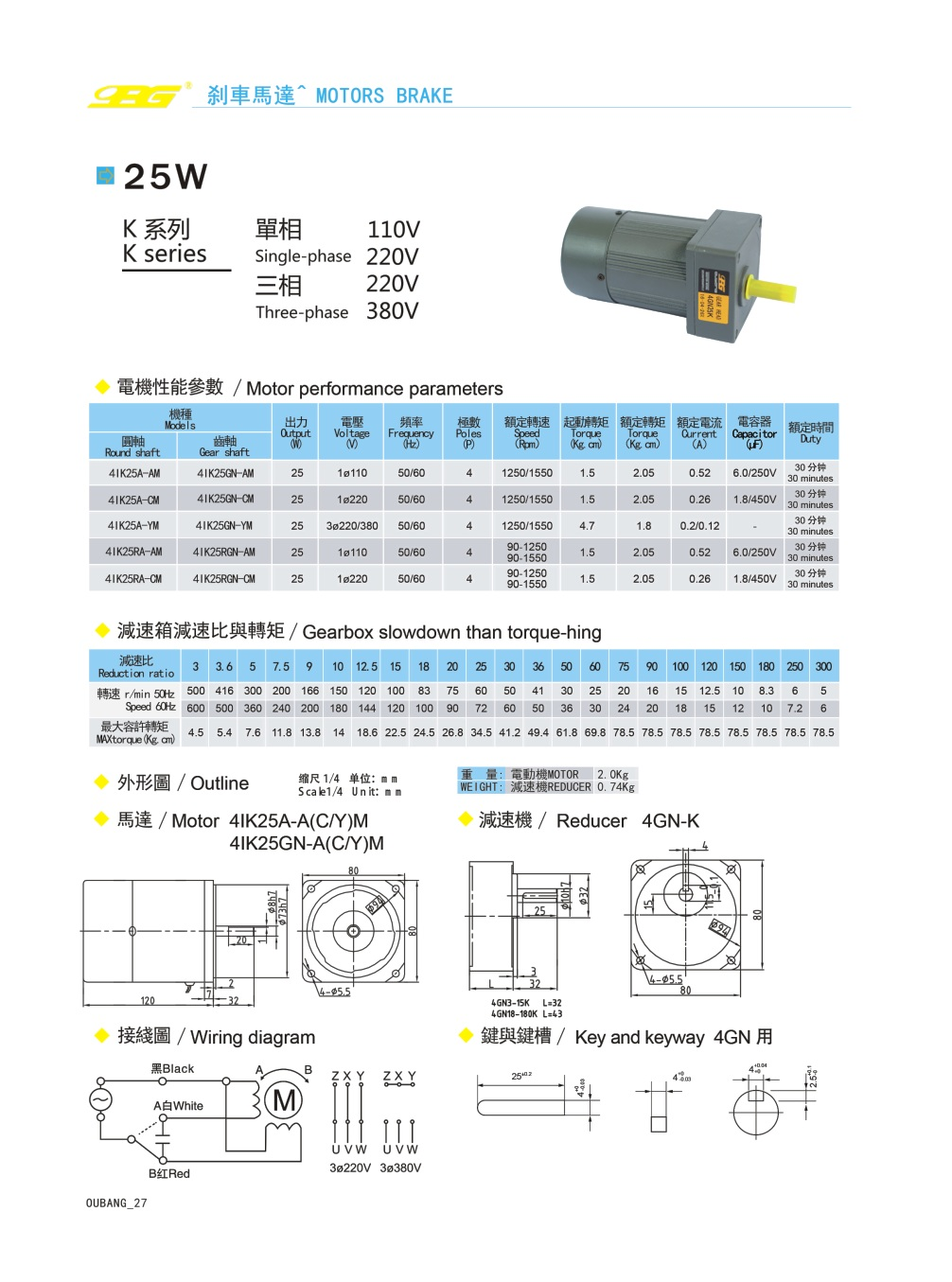 25W感应/调速刹车马达