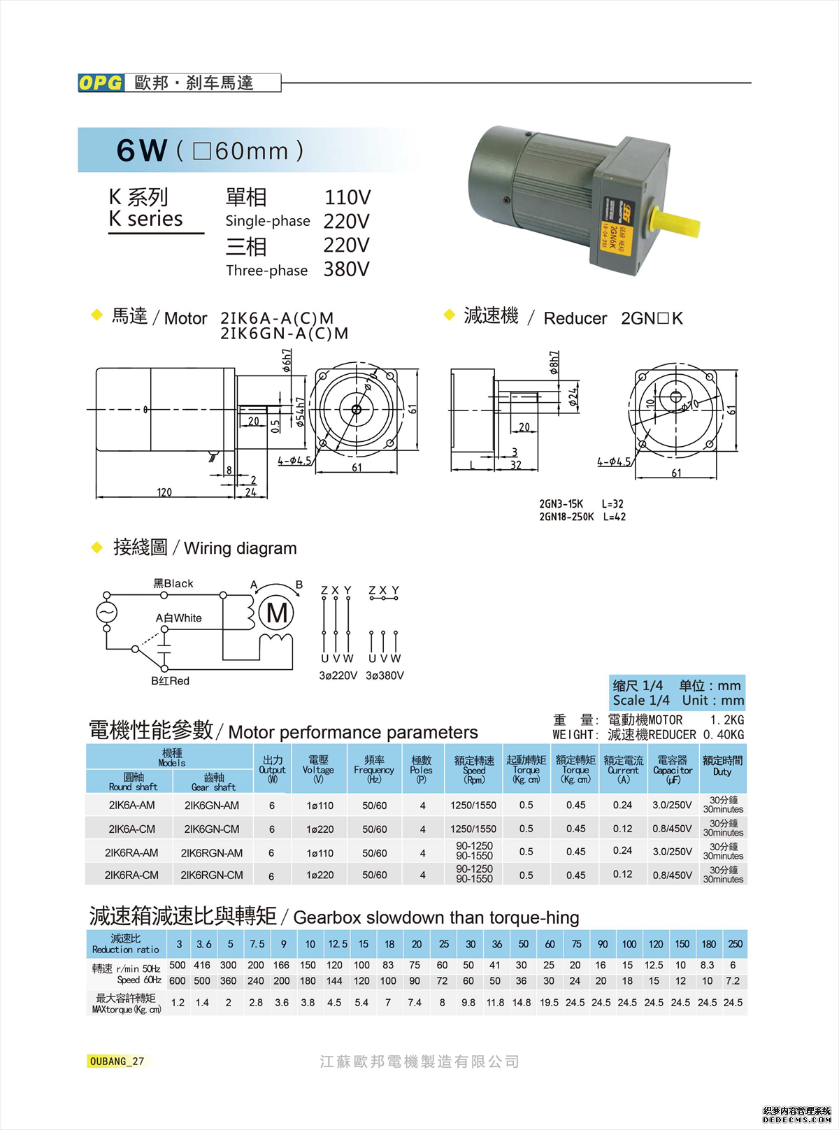 2IK6W感应/调速刹车电机